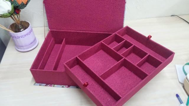 Gosto muito de cartonagem. Fazia um bom tempo que não tinha feito nada dessa área, mas está semana estava contabilizando os kits de cartolagem, que vendo para as alunas, e me deu uma vontade danada de por a mão na massa, rsrsrs.... dessa vontade saiu este porta jóia que ficou muito lindo.