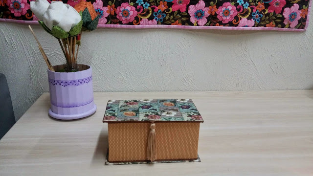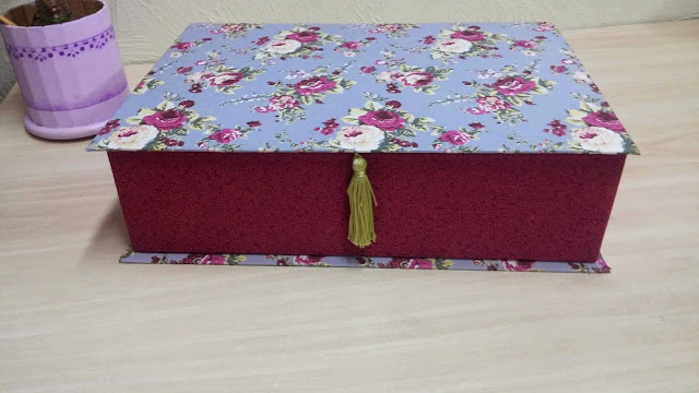 Uma das áreas do artesanato que gosto muito é cartonagem. Fiz a pouco esta caixa para guardar minhas bijoux, modéstia a parte ficou linda.